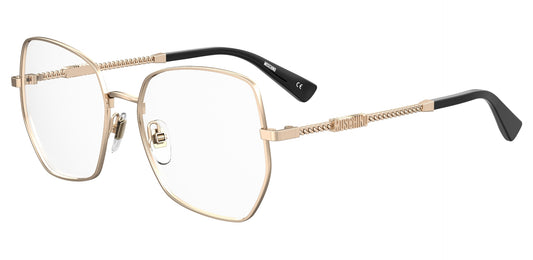 MOSCHINO WOMAN GEOMETRICAL Eyeglasses-MOS621 Size 54 Exclusive, glamorous and unmistakably Moschino: the Chain eyewear collection proudly celebrates one of the brand's signature style codes. Sleek metal frames in oversized and feminine silhouettes incorporate its iconic chain detail into the temple, topped with 3D logo...